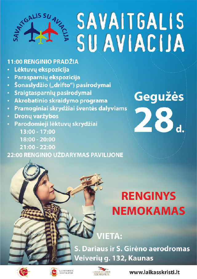 Dėkojame aviatoriams ir savivaldybei už paramą! Dėl jos renginys yra visiškai nemokamas. Be to, visą savaitgalį žmonės galės nemokamai aplankyti aviacijos muziejų. Šventės dalyviai turės galimybę apžiūrėti įvairių tipų lėktuvų (daugiau nei 50 orlaivių), parasparnių, sraigtasparnių, sportinių ir šonaslydžio („drifto“) automobilių ekspozicijas. Bus pristatomi ir pardavinėjami aviamodeliai, supažindinama su „dronais“ ir naujosiomis technologijomis. Bus pristatoma vaikų skraidymo mokykla su simuliatoriumi, rengiami kartingai mažiems ir dideliems. Renginyje netrūks pramogų vaikams: mažieji galės pašokinėti ant batutų, paragauti saldžios vatos, jiems bus demonstruojama, kaip pasigaminti aitvarą.